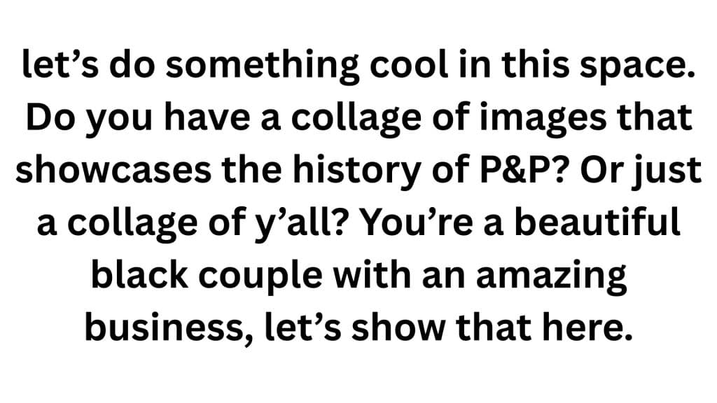 All about P&P goes in this space. We can brighten this page up with any artwork, storyboards, or something else cool you having to show case the company. We can also put your Mission and Values statement in this space too!